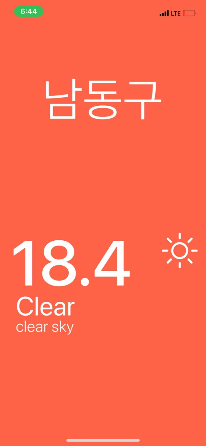 완성된 화면이다! React Native을 사용해서 날씨앱 만들기 끄읕!