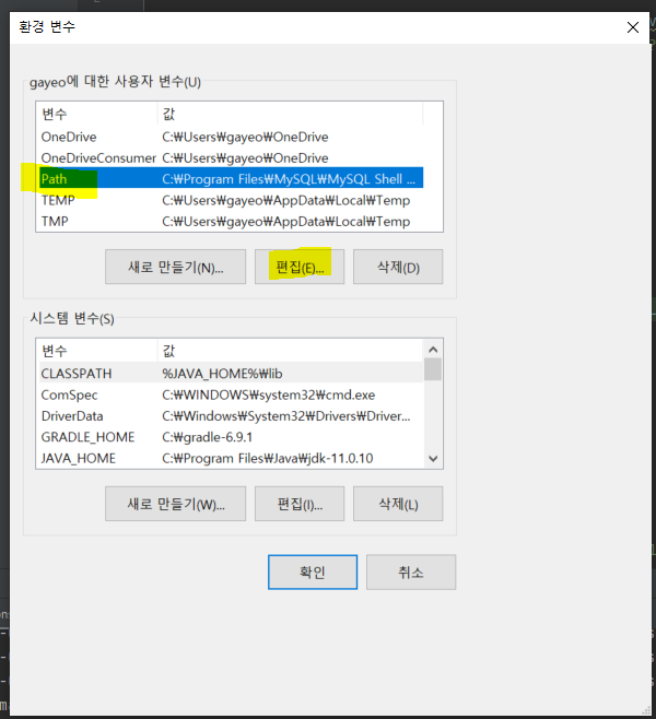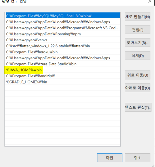 - 사용자 변수 Path : %JAVA_HOME%\bin